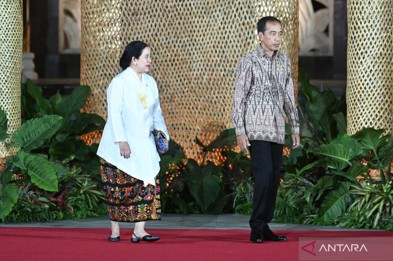 Presiden Jokowi sambut Puan Maharani sebelum Welcoming Dinner World Water Forum di Bali