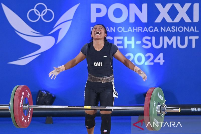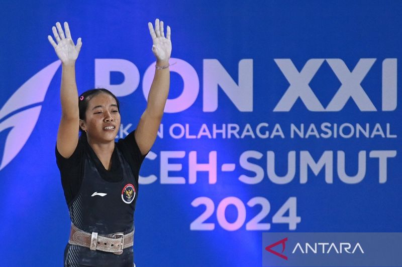 Lifter putri Jawa Tengah Siti Nafisatul Hariroh gagal melakukan angkatan Clean and Jerk dalam kelas 45 kg putri PON XXI Aceh-Sumut 2024 di GOR Seuramoe Angkat Besi Harapan Bangsa, Banda Aceh, Aceh, Rabu (4/9/2024). Adelia Prasasti asal Lampung berhasil meraih medali emas dengan total angkatan 161 kg, medali perak diraih lifter DKI Jakarta Lisa Indriyani dengan total angkatan 156 kg dan medali perunggu diraih Lisa Setiawati asal Jawa Timur dengan total angkatan 146 kg. ANTARA FOTO/Wahyu Putro A/Spt.