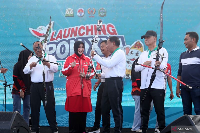 Menteri Pemuda dan Olahraga Zainudin Amali (kanan) bersama Anggota Komisi X DPR-RI Illiza Sa'aduddin Djamal (tengah) dan Ketua Umum KONI Pusat Letjen (Purn) Marciano Norman (kiri) saat peluncuran Pekan Olahraga Nasional (PON) XXI 2024 Aceh-Sumut di Lapangan Blang Padang, Banda Aceh, Aceh, Sabtu (28/1/2023). Peluncuran logo, maskot gajah putih dan taqline ?Bersatu Kita Juara? PON XXI 2024 Aceh-Sumut tersebut menjadi tanda dimulainya titik awal pelaksanaan agenda olahraga empat tahunan itu. ANTARA FOTO/Irwansyah Putra/YU