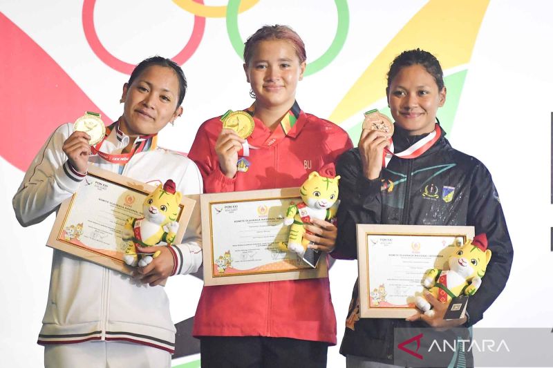 Perenang Bali Lilly Kartina Beales memacu kecepatan saat final renang 50 meter gaya kupu-kupu putri PON XXI Aceh-Sumut di Kolam Renang Selayang Dispora Sumatera Utara, Medan, Minggu (15/9/2024). Perenang Bali Lilly Kartina Beales meraih medali emas dengan catatan waktu 26,62 detik, medali perak diraih perenang DKI Jakarta Angel Gabriella Yus dengan catatan waktu 28,43 detik sedangkan medali perunggu diraih perenang Sulawesi Tengah Sofie Kemala Fatiha dengan catatan waktu 29,16 detik. ANTARA FOTO/Nova Wahyudi/YU