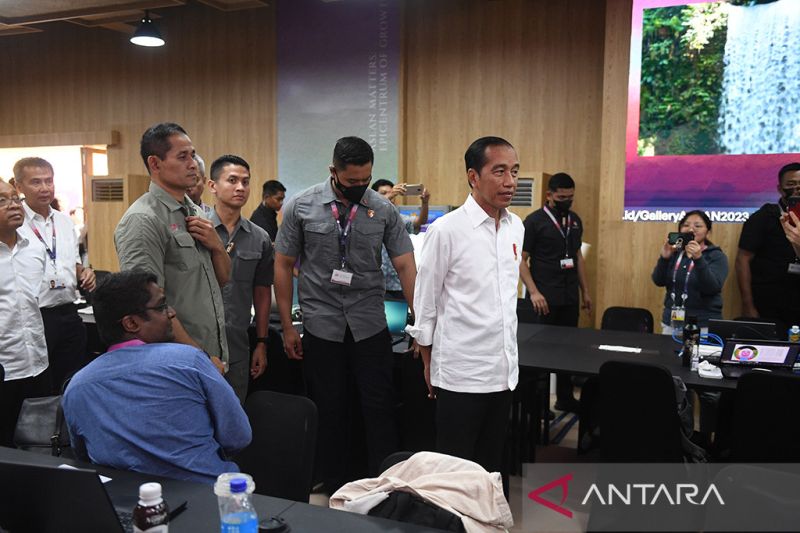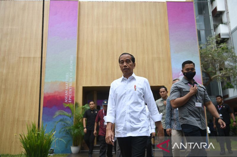 Presiden Joko Widodo (kedua kanan) didampingi Mensesneg Pratikno (kiri) berjalan menuju Media Center KTT ke-42 ASEAN di Hotel Bintang Flores Labuan Bajo, Manggarai Barat, NTT, Selasa (9/5/2023). ANTARA FOTO/Akbar Nugroho Gumay/nym.