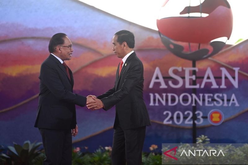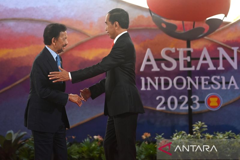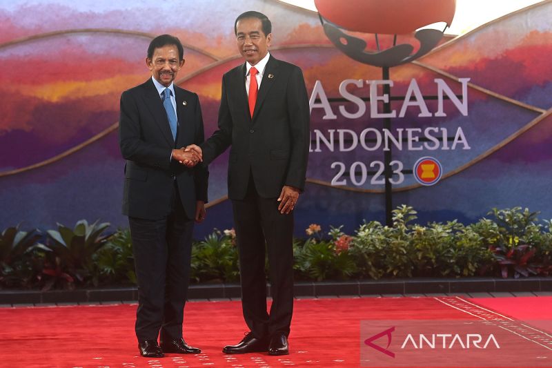 Presiden Joko Widodo menerima kedatangan Sultan Brunei Darussalam Hassanal Bolkiah dalam Konferensi Tingkat Tinggi (KTT) ke-42 ASEAN di Labuan Bajo, Manggarai Barat, Nusa Tenggara Timur (NTT), Rabu (10/5/2023). KTT ke-42 tersebut mengangkat tema ASEAN Matters: Epicentrum of Growth. POOL/ANTARA FOTO/Aprillio Akbar/pras.