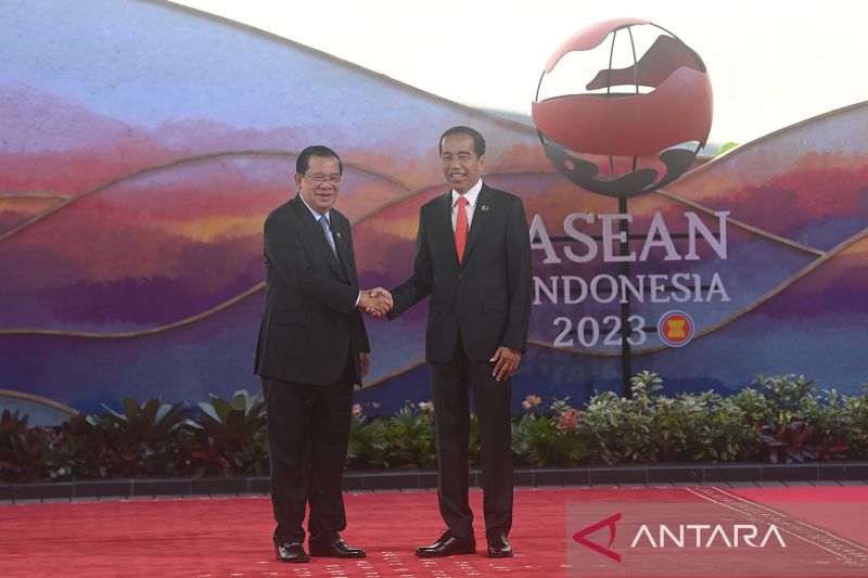 Presiden Joko Widodo menerima kedatangan Perdana Menteri Kamboja Hun Sen dalam Konferensi Tingkat Tinggi (KTT) ke-42 ASEAN di Labuan Bajo, Manggarai Barat, Nusa Tenggara Timur (NTT), Rabu (10/5/2023). KTT ke-42 tersebut mengangkat tema ASEAN Matters: Epicentrum of Growth. POOL/ANTARA FOTO/Aprillio Akbar/pras.