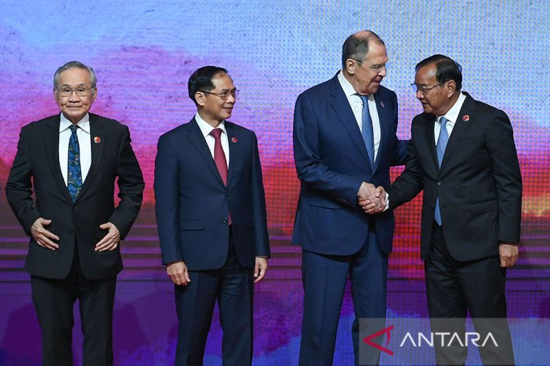 Menlu Rusia Sergey Lavrov menghadiri Pertemuan Menteri Luar Negeri ASEAN (PMC) bersama Rusia di Jakarta, Kamis (13/7/2023). ANTARA FOTO/Muhammad Iqbal/nym.