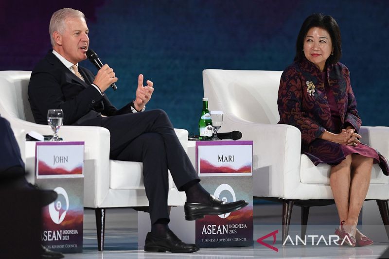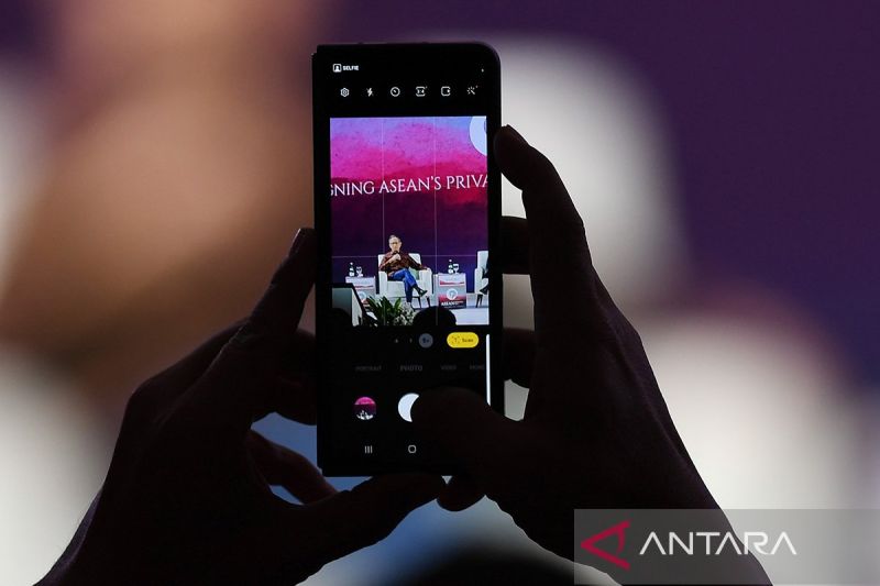Seorang peserta mengambil gambar menggunakan gawainya saat Ketua OJK Mahendra Siregar menyampaikan gagasannya pada diskusi panel pleno ketiga ASEAN Business and Investment Summit 2023 di Jakarta, Minggu (3/9/2023). ANTARA FOTO/Media Center KTT ASEAN 2023/Zabur Karuru/Spt.