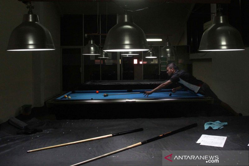Atlet Cabang Olahraga (Cabor) Billiard Oki Candra (38) asal Sumatera Barat berlatih di gedung serbaguna GOR Haji Agus Salim, Padang, Sumatera Barat, Rabu (21/10/2020). Latihan rutin ini digelar sebagai persiapan menghadapi Pekan Olahraga Nasional (PON) di Papua pada Oktober 2021 mendatang. ANTARA FOTO/Muhammad Arif Pribadi/Lmo/hp.
